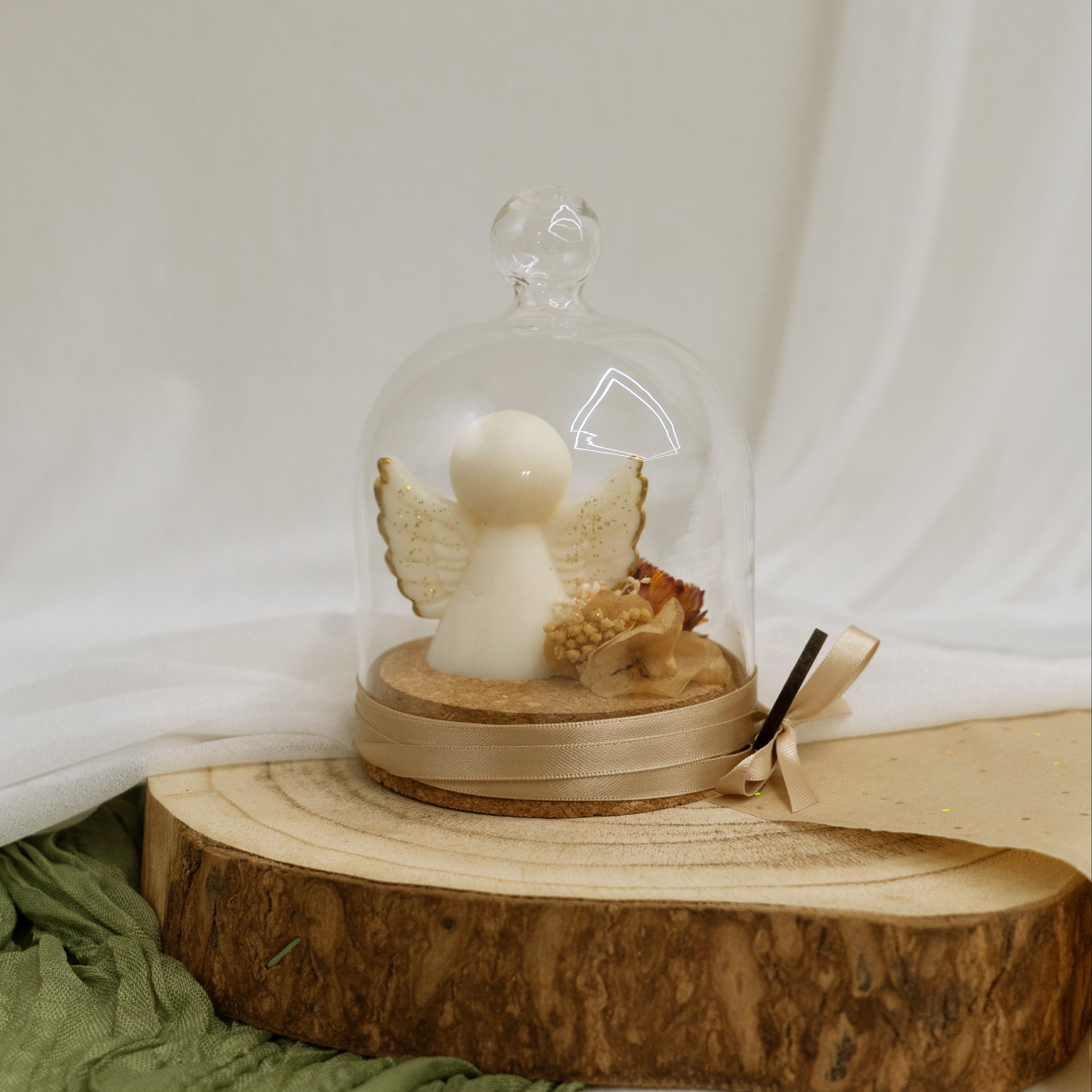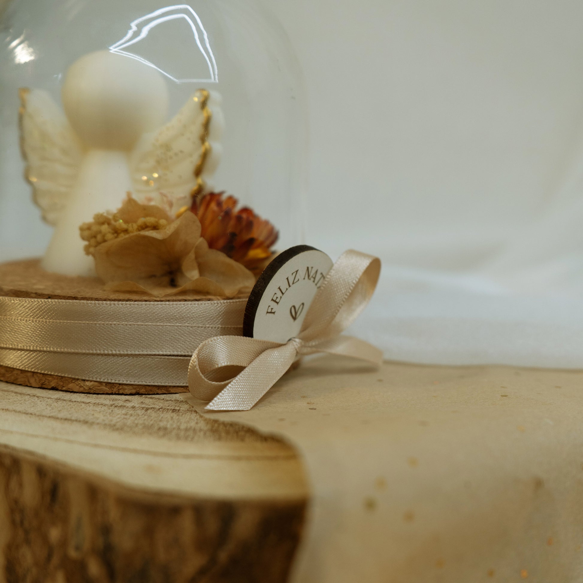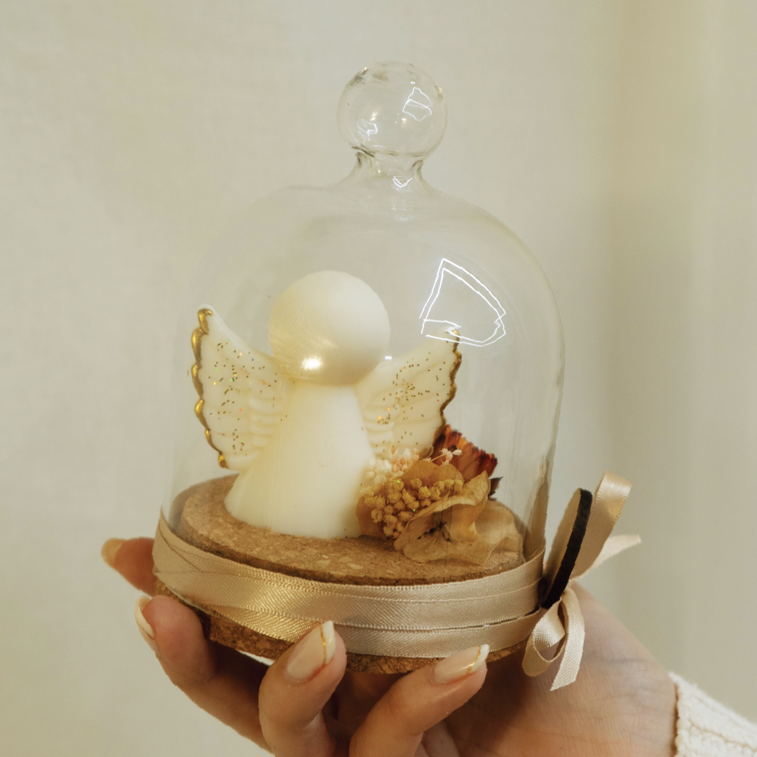 · INGREDIENTES - Campânula de vidro, cera de soja, e flores secas