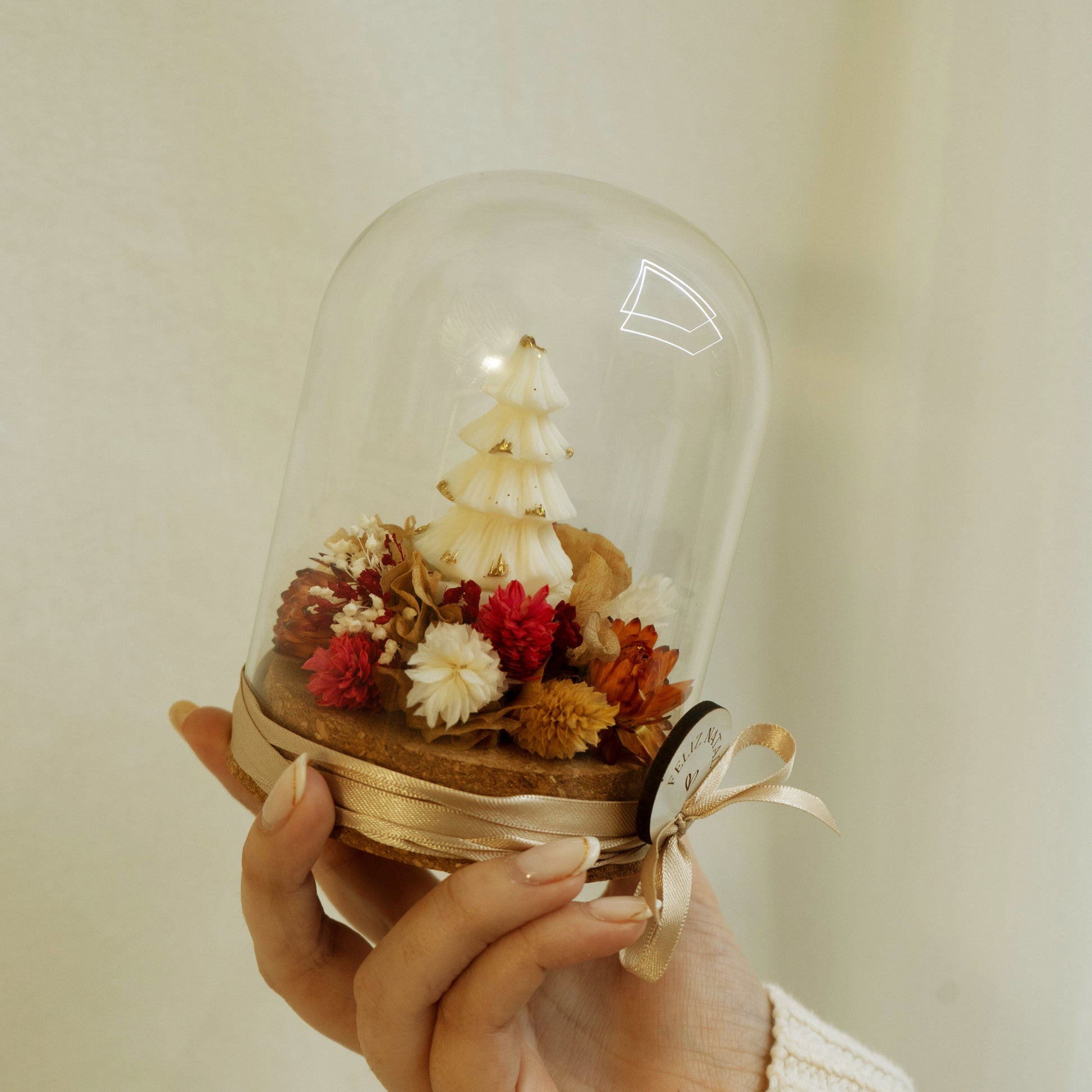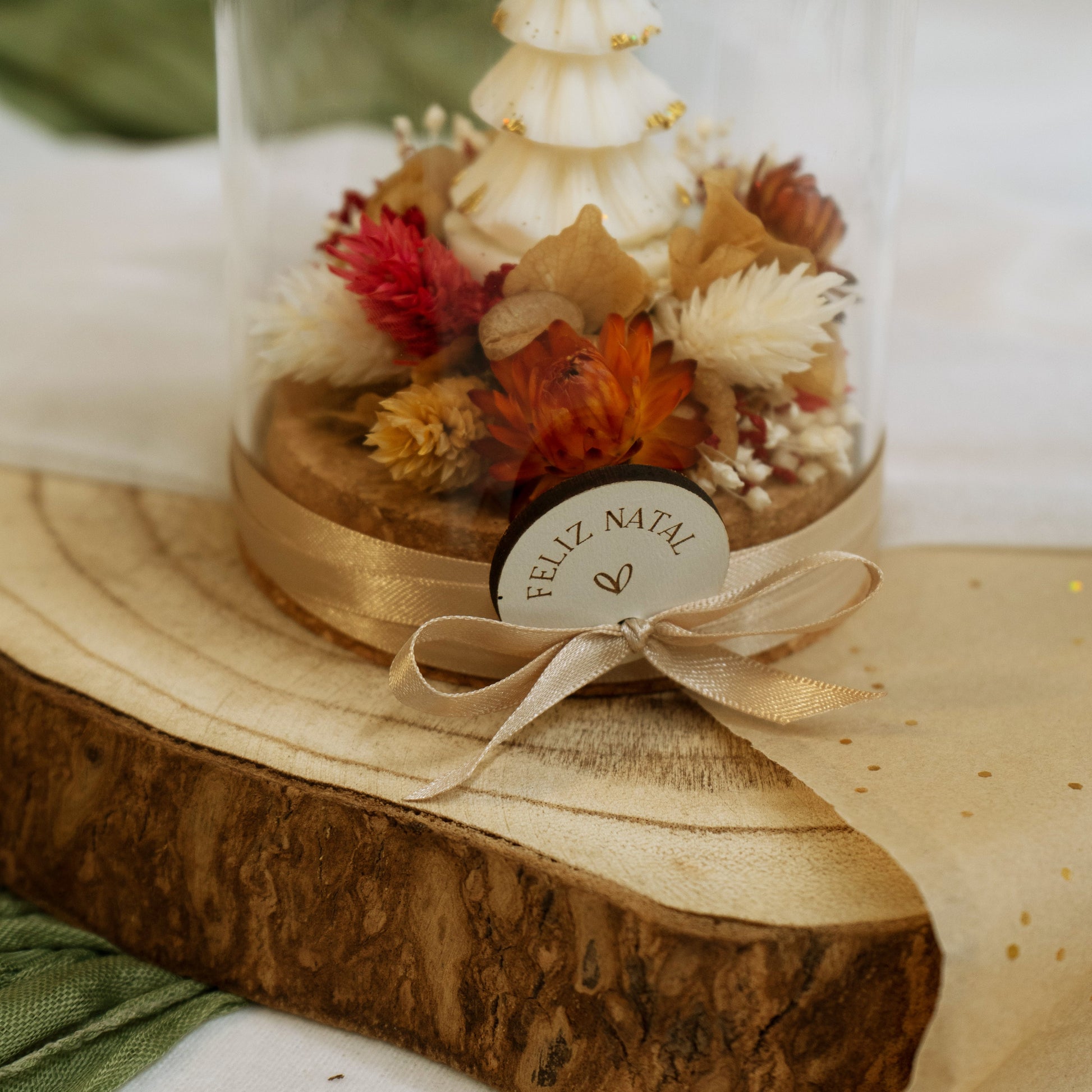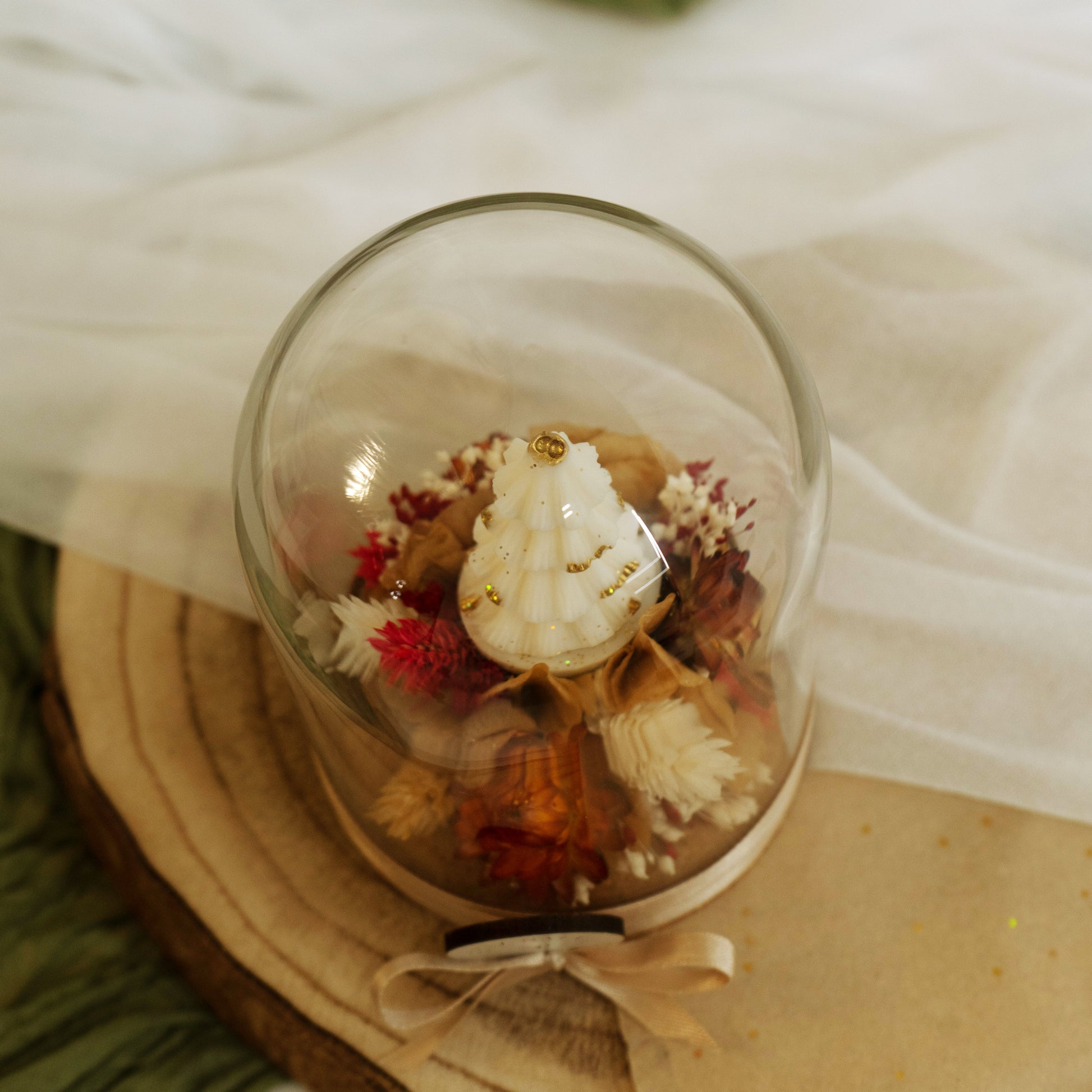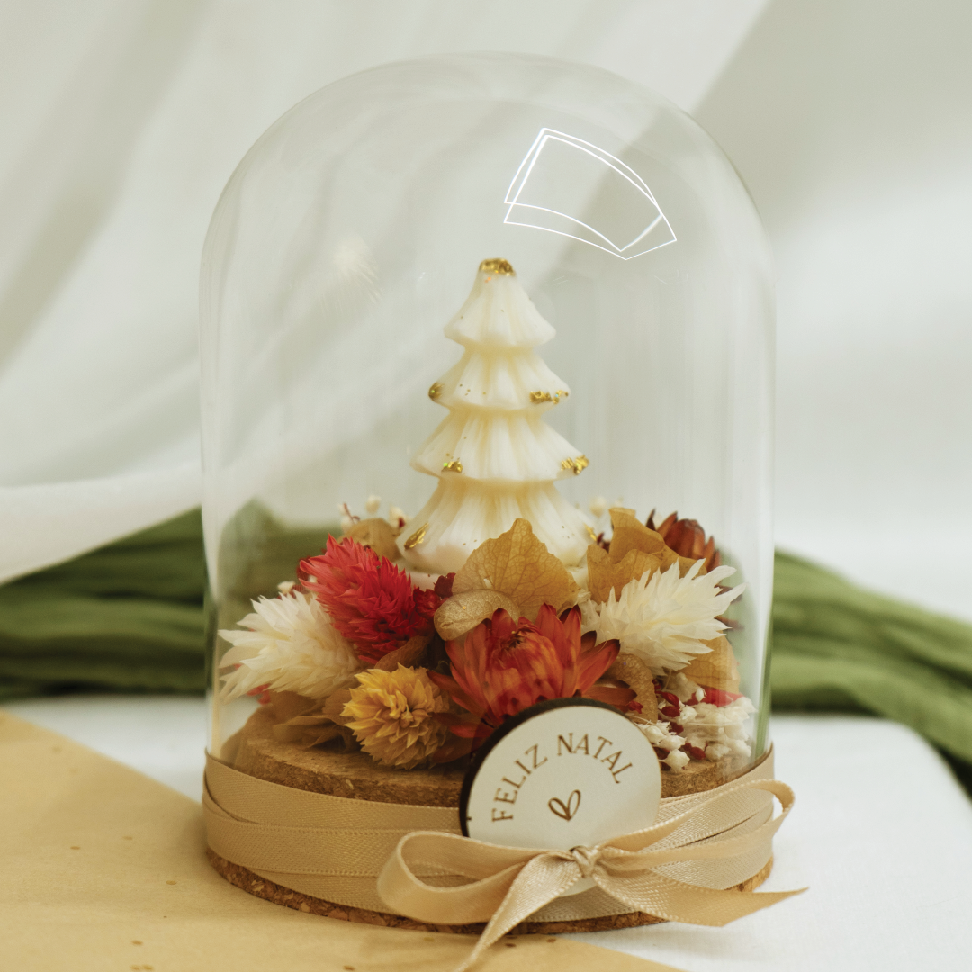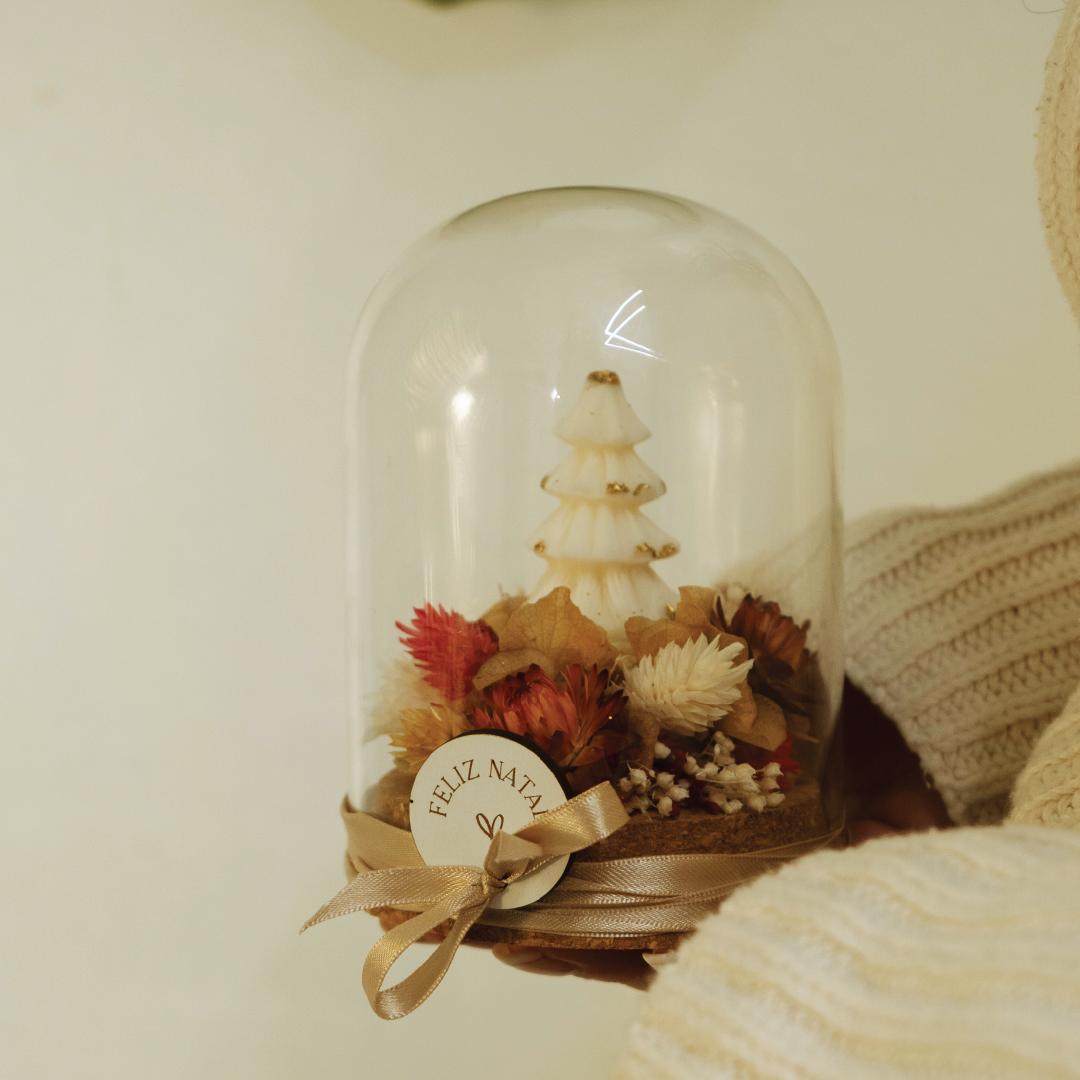 · INGREDIENTES - Campânula de vidro, cera de soja, e flores secas