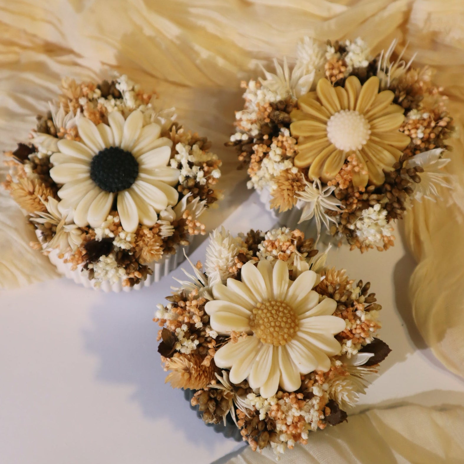 · INGREDIENTES - cera de soja, fragância natural, gesso cerâmico e Flores secas